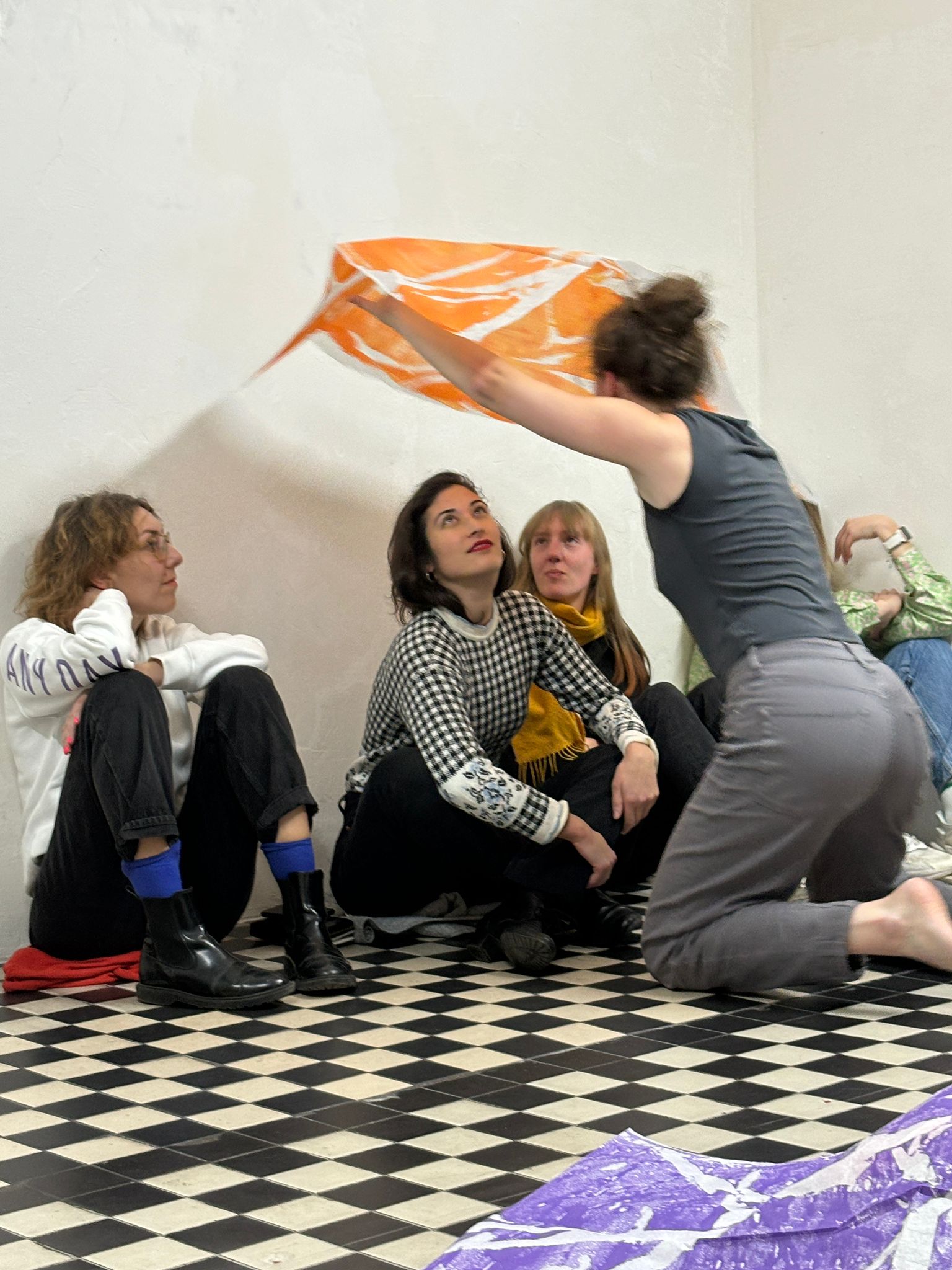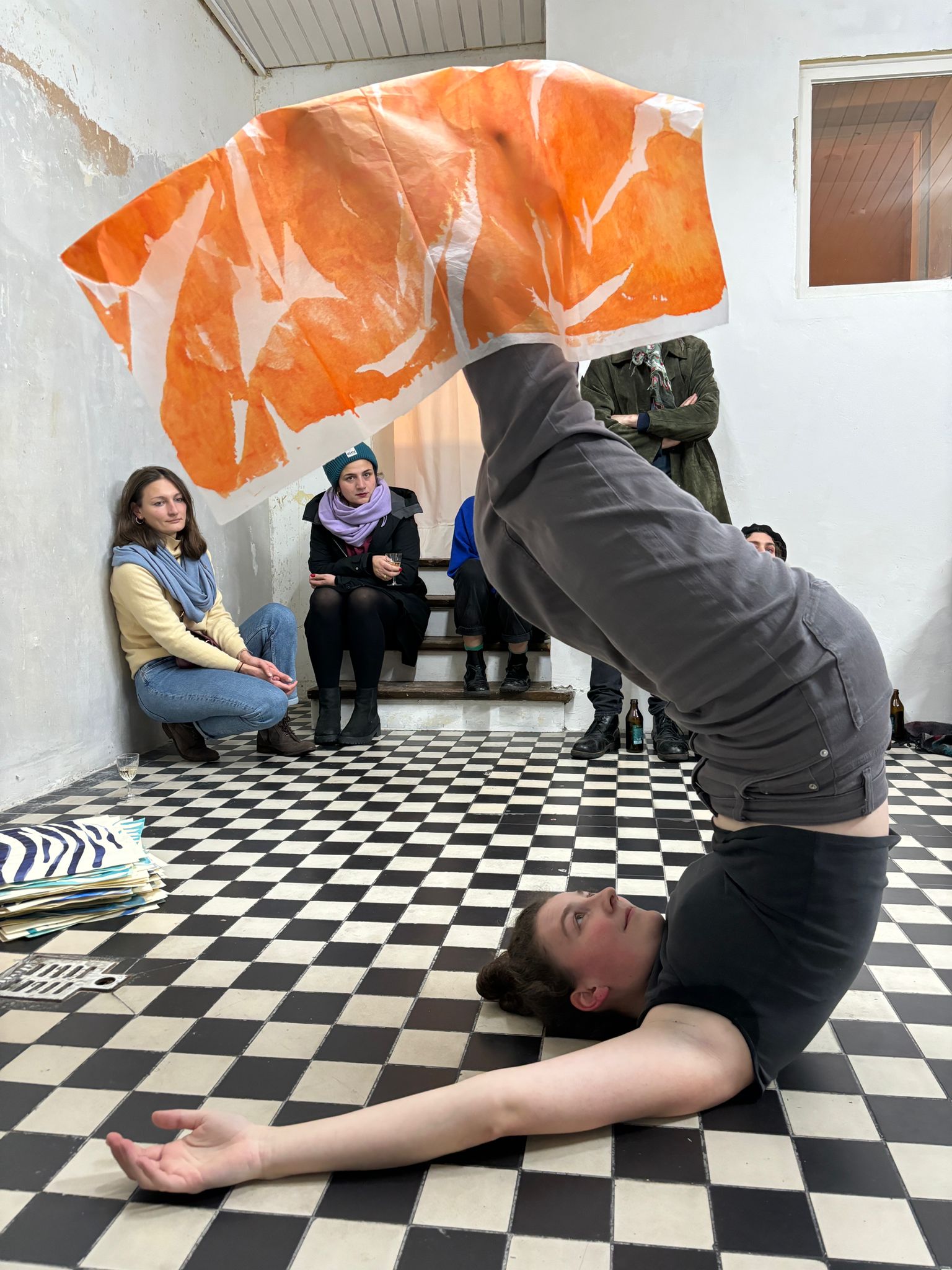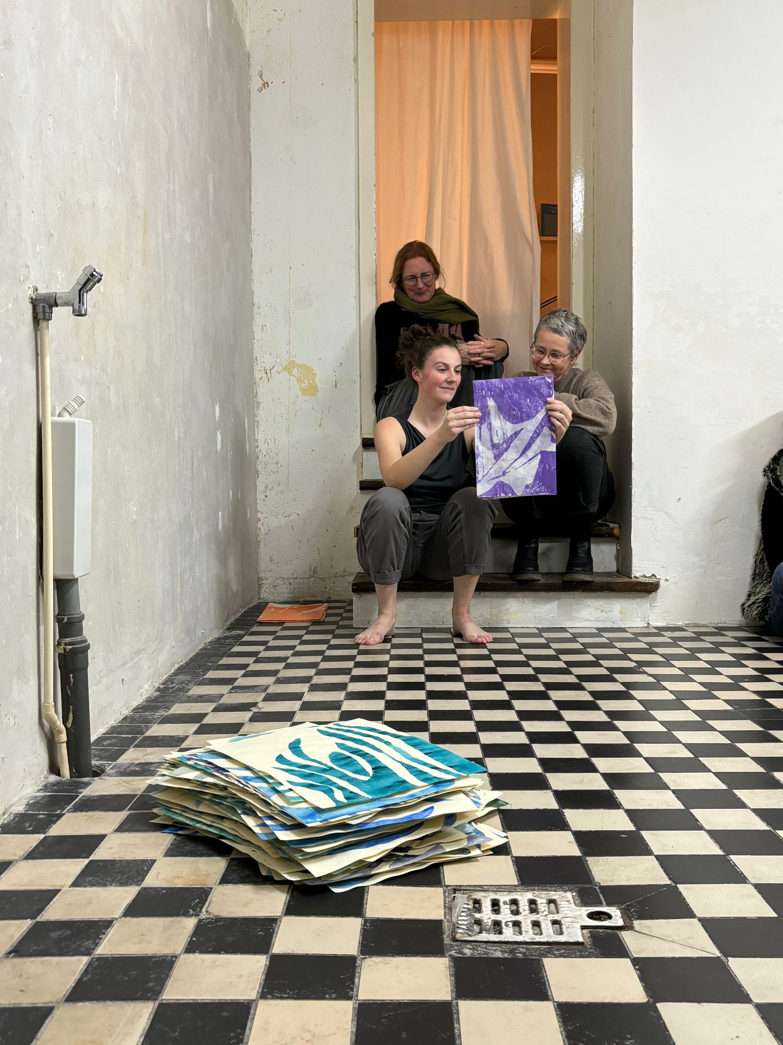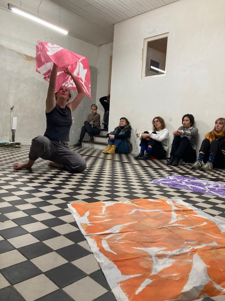 The space in between ist nach Wo ich jetzt stehe der zweite Teil der interdisziplinären Performanceserie Endless//Boundless von Valentina Jaffé (Bildende Kunst) und Vivian Schöchlin (Darstellende Kunst). Neben der Bezihung zwischen Körper und Malerei binden die Künstler*innen im COOLPOOL(AT) diesmal den Raum und dessen Begegungs-Potential ein.